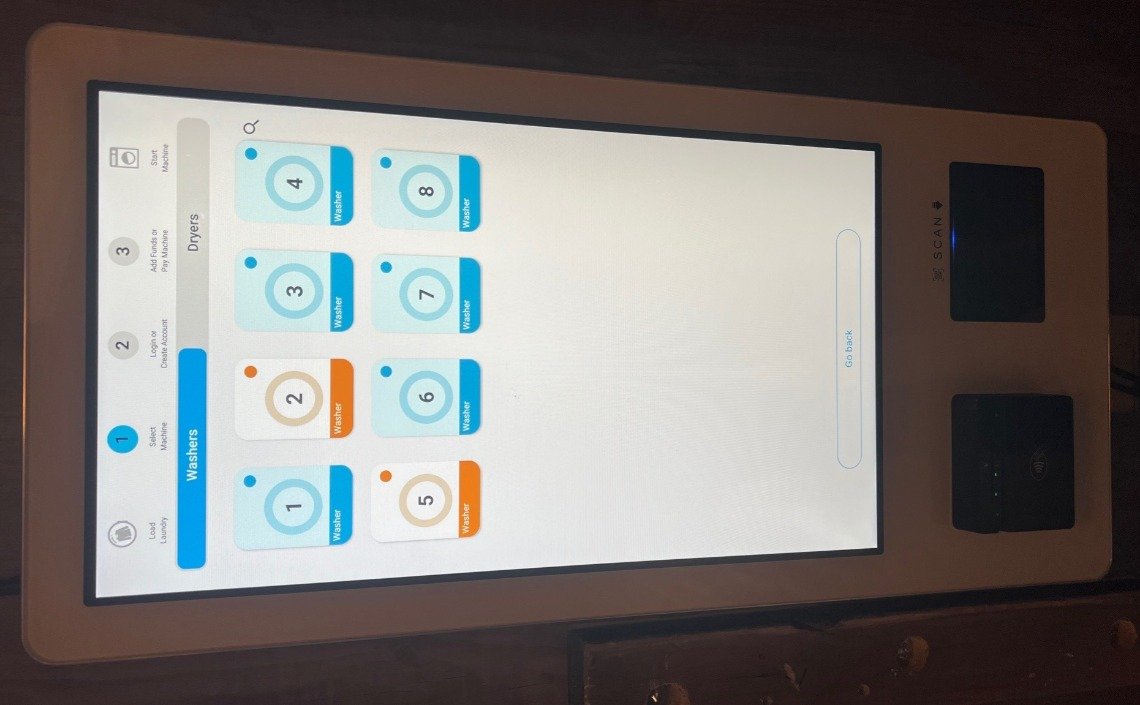 Installation of new Maytag High Efficiency front loads, vended with the PayRange Smartphone App. Supplemental kiosk allows for credit and debit vending to start machinery without the need for a smartphone app!
